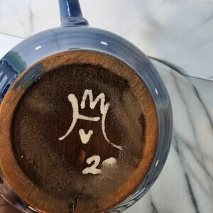 Artist Signed Vintage Blue Art Pottery Pitcher Floral Love Birds Boho Folk Art. Pitcher measures 4.5" tall by 6.5" wide. Capacity is around 2 cups. No chips or cracks. Beautiful folk Art piece. This vintage hand-painted blue art pottery pitcher features a delicate floral love bird motif, signed by the artist. A one-of-a-kind folk art piece, perfect for boho-style decor, farmhouse settings, or as a unique gift. Adds retro charm to any space.