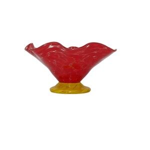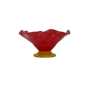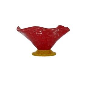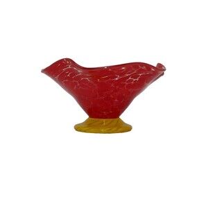 Artist Signed Wonkie Jimmie Art Glass Waffled Edge Footed Candy Compote Bowl Red