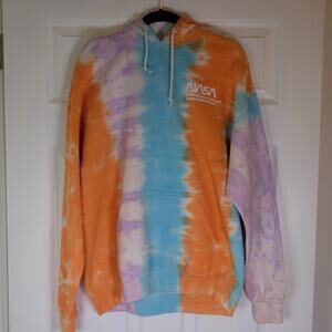Artist Union NASA Tie Dye Hoodie Large Orange Blue Purple Space Shuttle
