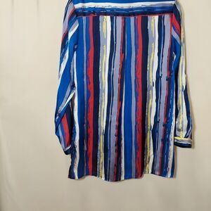 New with tag. 100% polyester. Roll up sleeves. Longer in back. Sz small. Approx measurements laying flat: 25"L front, 31"L back x 19"w x 23"L arms unrolled.
