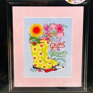 Artiste counted cross stitch kit "Grow and Blossom". The kit includes all necessary threads, a 14-count Aida fabric, and detailed instructions by Zweigart, ensuring a seamless crafting experience for cross-stitch enthusiasts. The finished size is 8.125" x 10.625". Frame not included. Designed by Kooler Design Studio. New condition (2015).