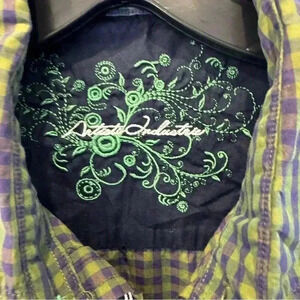 Artisti Industrie Italy Checkered Long Sleeve Button Up Green & Navy Cotton Sz L