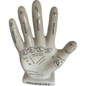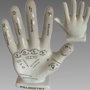 ITEM: Artistic Accents Cream Ceramic Painted Mystic Palmistry Hand Statue-12.5" Tall *