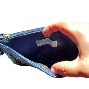 This stunning beaded clutch features a vibrant Starry Night design, perfect for adding an artistic touch to any outfit. The intricate beadwork showcases shades of blue, yellow, and black, making it a unique accessory for any occasion.