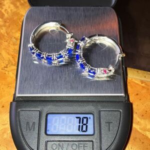 Artistic Blue Spinel Ruby Sterling Silver Hoop Earrings