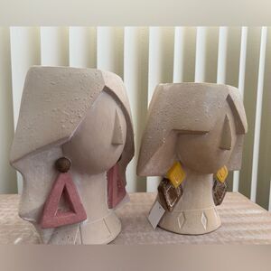 Artistic Ceramic/Resin Face Vases - Cream and Pink