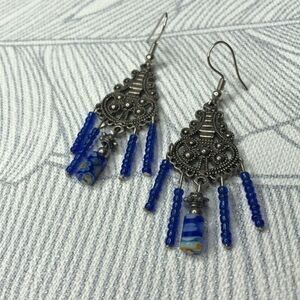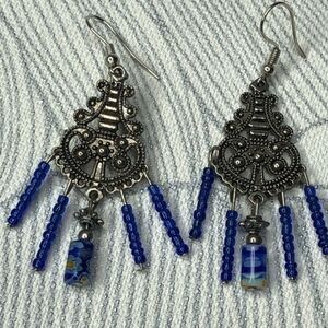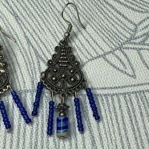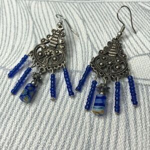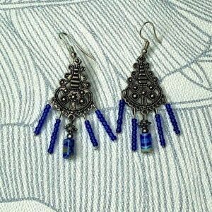 Fun and lightweight earrings Silver toned with blue seed beads Handmade