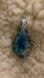 Beautiful glass pendant featuring a blue floral design with green and gold accents. Perfect for adding a touch of elegance to any outfit.