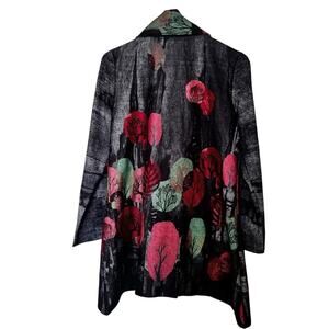 Artistic Navy Blue Red Tree Print Cowl Neck Jacket size small
