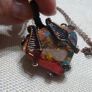 Artistic "OYSTER TURQUOISE" Handmade COPPER WIRE-WRAPPED Pendant on a 18" Chain #332B