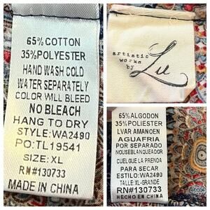 Artistic Works by Lu Boho Swing Dress V-neck Fringe Blue Multi Women’s Size XL