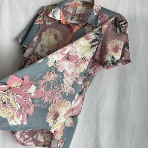 Artistic Works by Lu Short Sleeve Button Down Floral Mixed Print Blouse Size S