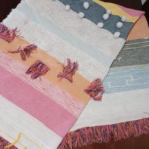 Reversible, Striped, Rectangle. Tassels at each end. Multicolor.