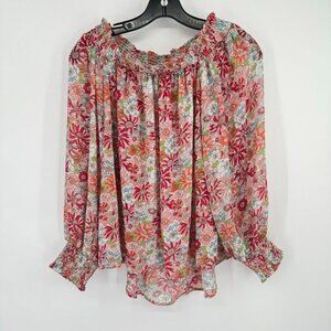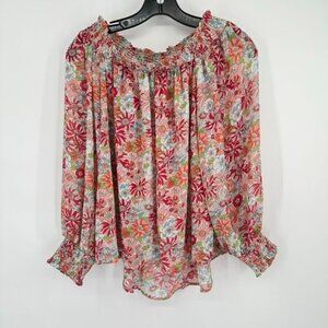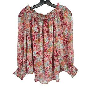 Artistic works by Lu floral off the shoulder semi sheer blouse top size medium