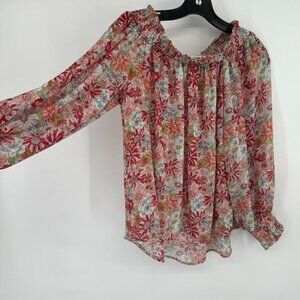 Artistic works by Lu floral off the shoulder, semi sheer blouse, top size medium