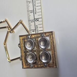 This vintage Artistry by Amway necklace is a stunning addition to any jewelry collection. The two-tone gold and silver necklace measures 20 inches in length and features a beautiful square-shaped amulet pendant. The pendant and chain are made of high-quality metal, but the specific metal type and purity are unknown. The necklace is perfect for any occasion, whether it's a casual day out or a formal evening event. The necklace's theme includes beauty, art, family and friends, signs and symbols, fashion and costumes. This necklace is a must-have for anyone who loves unique and stylish jewelry pieces.