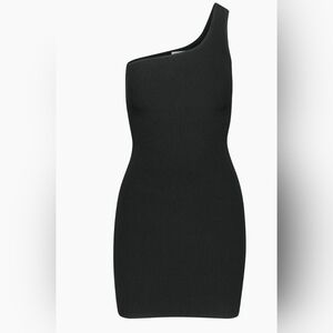 This is a one-shoulder mini dress with fully fashioned construction. It's made with Sculpt Knit - Babaton's signature figure-smoothing yarn. The perfect amount of stretch hugs in the right places to shape and sculpt your form. This version is constructed using an Ottoman stitch with close distinct ribs for a structured and textural feel.