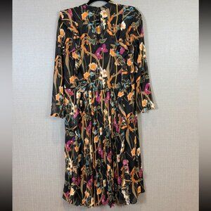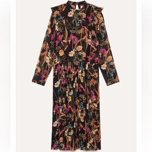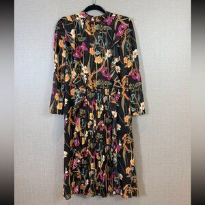 Artizia Little Moon Orchid Floral Midi Long Sleeve Drop Waist Dress