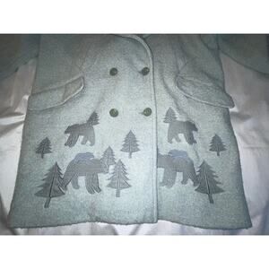 Artka Wool Blend Coat - Women's Size L - Fun Artic Bears, BOHO Style, Mint Green