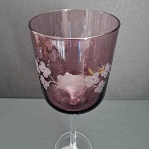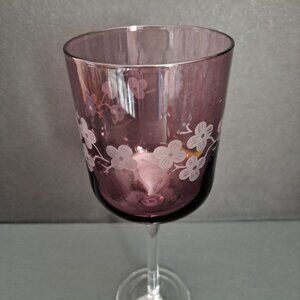 Artland Amethyst Cherry Blossom Wine Glass 8 5/8" Etched Purple Goblet Elegant