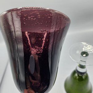 Artland Iris bubble hand blown plum & avocado colored glass goblets set of 2