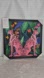 NIP Vibrant art print featuring pink leopards with pearl necklaces. Surrounded by lush green leaves and orange butterflies. 20x 20