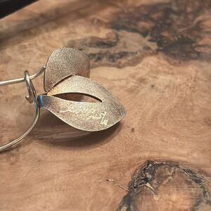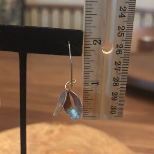 Very Fun Artsist Signed Silver Leaf Earrings. I am not able to read the the signature nor find any material markings, but they are clearly an artist piece, even by the wires. (see last 3 photos for artist markings).