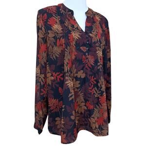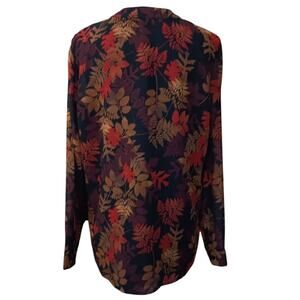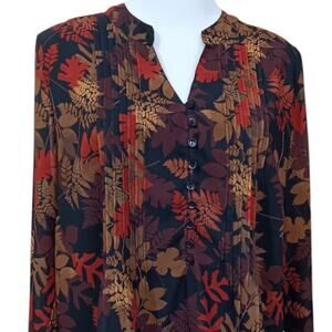 Artsy Blouse Peasant Top M Foliage Leaves Colorful Nature Autumn Fall Pin Tuck