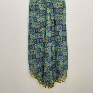 Artsy Bohemian Chiffon Dress Womens Medium* Green Maxi Tropical Beachy Coastal
