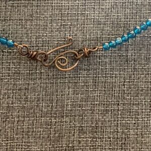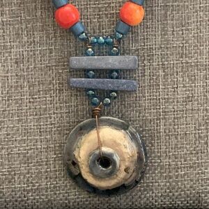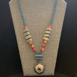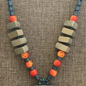 Artsy Boho Handmade Necklace 23” Wood Stone Wire Hook Clasp