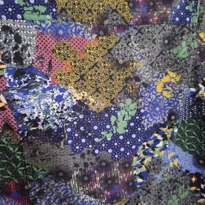 This is a very nice women's blazer jacket by Christopher & Banks. This has a splash of color all over and zips up the front. It has real pockets on the front that each have a button closure. It is 97% polyester and 3% spandex but has a very soft feel. 22" from pit to pit and 24" from shoulder to hem.