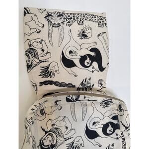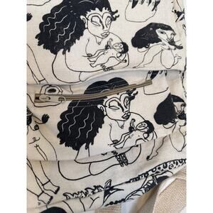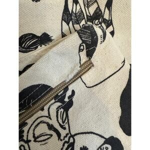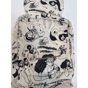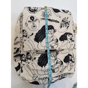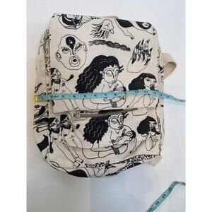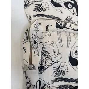 Artsy unbranded Oaxacan Mexican woven cream & black backpack. Zipper closure with front flap. Print depicts surreal, abstract, maternal, occult themes. Super unique piece!