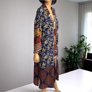 Artsy Dark Floral Maxi Kimono Open Flowy Topper Umgee M Boho Festival Lagenlook
