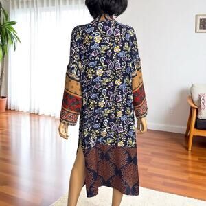 Long Open Kimono Topper Umgee M Flowy Dark Floral Artsy Boho Festival Lagenlook
