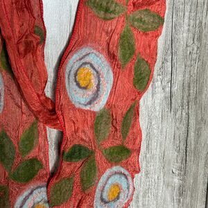 Artsy Handmade Scarf Felt and Organic Fabric Art to Wear Boho Made in Turkey