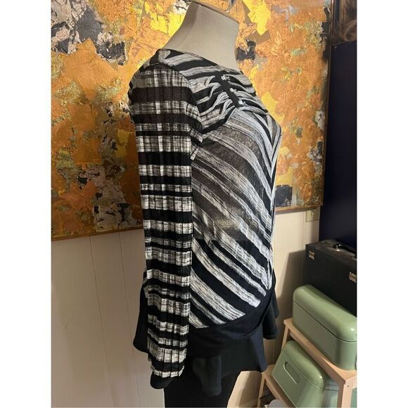Artsy Komarov Sheer Striped Gray & Black Tunic Size M