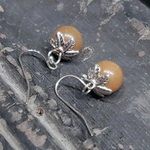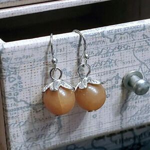 SIZE (average/approximate): earrings are about 27mm long overall; beads are about 10mm round, bead caps are about 11mm across