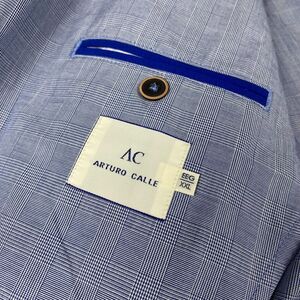 Arturo Calle Men's Blazer XXL Two Button Cotton Spring Summer Jacket Blue Plaid