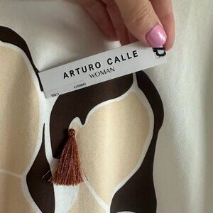 Make a bold statement with this eye-catching funky retro top from Arturo Calle. Designed for the style-savvy woman, this size small piece features a vibrant brown and yellow color palette that channels vintage flair with a modern twist. The embellished details add a playful and artistic touch, perfect for turning heads at casual outings, creative events, or weekend wear.