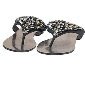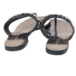Arturo Chiang Black Leather Flip Flop Sandal with Rhinestone Embellishment 7