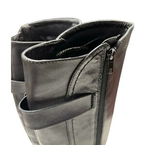 Arturo Chiang Darren Black Leather Knee High Zip Up Boots Size 8