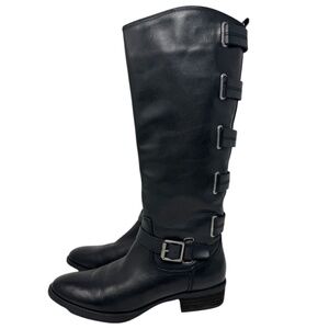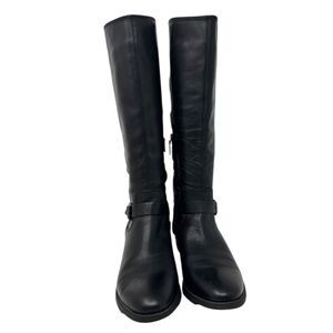 Arturo Chiang Elsie Tall Knee Leather Riding Moto Black Boot