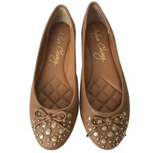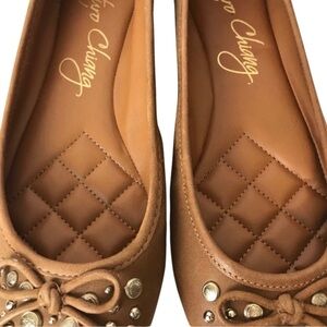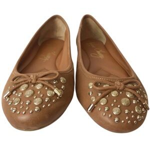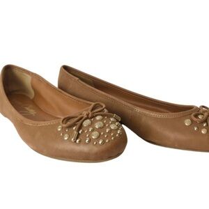 Arturo Chiang Genuine Leather Studded Cognac/Tan Ballet Flats. Quilted inside for comfort. Tiny bow as seen on classic ballet flats. EUC! Size 9.5