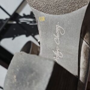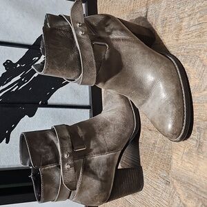 Arturo Chiang Gray Ankle Boots with Cuffed Top and Rounded Toe