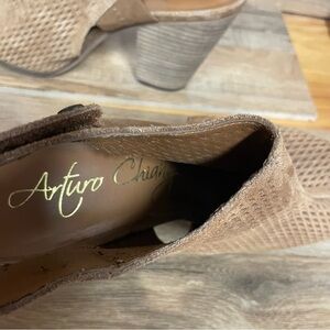 Arturo Chiang Macadamia Cow Split Suede Janel Heels peep toe Womens Size 8.5