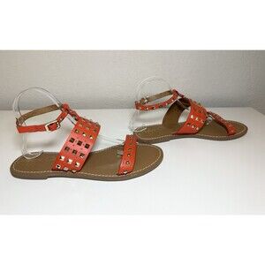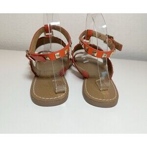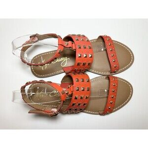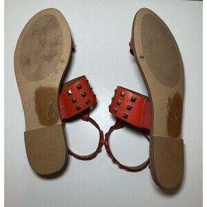 Arturo Chiang Orange Gold Studded Leather Flat Ankle Strap Sandals Women's 9M