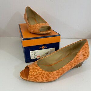 Arturo Chiang Rio Snake Melon Peep Toe Wedges Womens 6.5M Orange