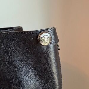 Classic Arturo Chiang tall riding boots in sleek black leather with decorative silver button details and full back zipper closure. Versatile and comfortable style that pairs perfectly with jeans, leggings, or dresses.