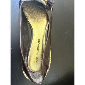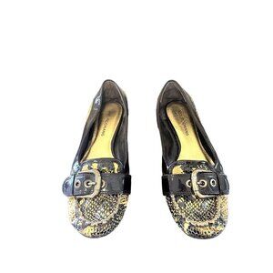 Arturo Chiang Yellow & Brown Snakeskin Flat Shoes 7.5