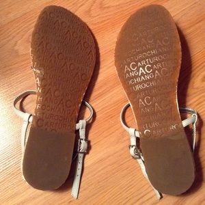 Great condition , only wore them once , jewels as decor and snake print , but the side straps do slide down when you walk sometimes .